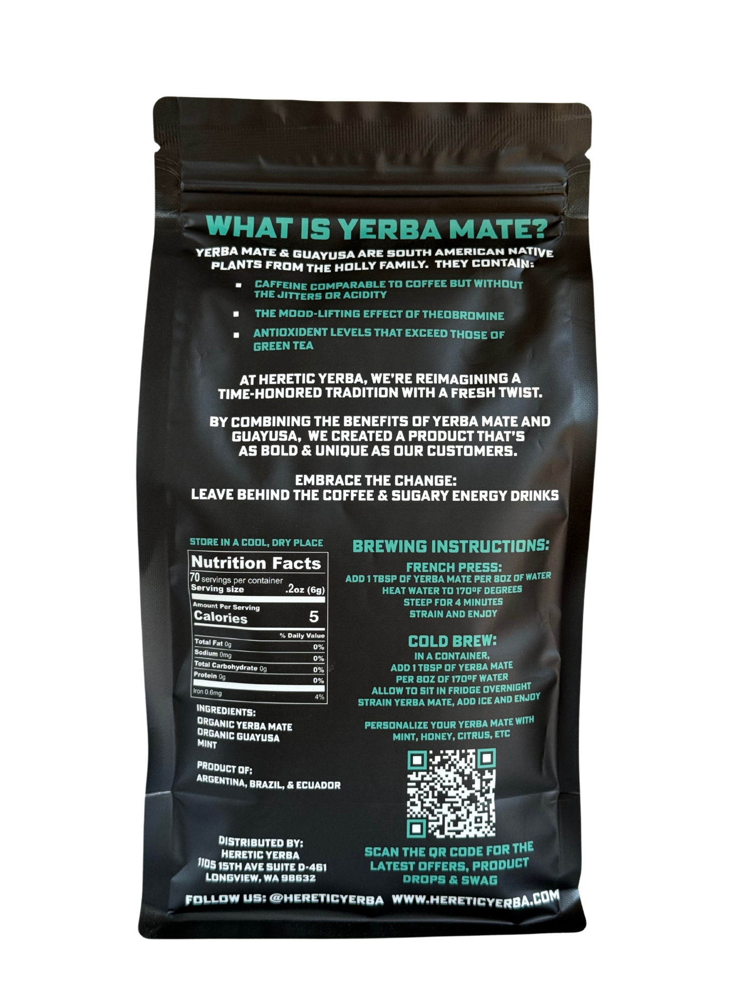 Heretic Yerba's Signature Blend: Yerba Mate, Guayusa, and Mint